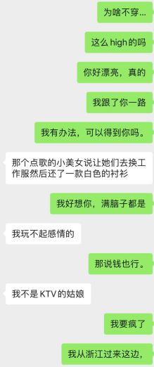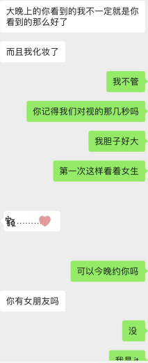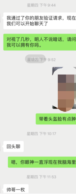 这次的女主,是我一个夜晚,在路上遇到的,说起来也挺美妙的。那时候她坐在电动车大叔的后座,好像是去应酬,而我跟她同方向在马路上,我转头看到她,被吸引住了,和她对视了几秒,她没有抽开眼神..就这样,我觉得有戏。我跟着她,骑在她的身后跟着,她侧坐着,看着她的雪白大腿,她撩着头发的动作,显得格外迷人,她时不时的往后看看我,我知道有戏。但是我想到,如果我一直跟着,可能会让她觉得变态,或者跟到了她家,她会不会害怕?不行,我必须要行动,趁着她身边有人,有安全感的时候。就在等红绿灯的时候,我停下来问:美女,我..可以加你的微信吗.. 就这样~得到了她的微信。